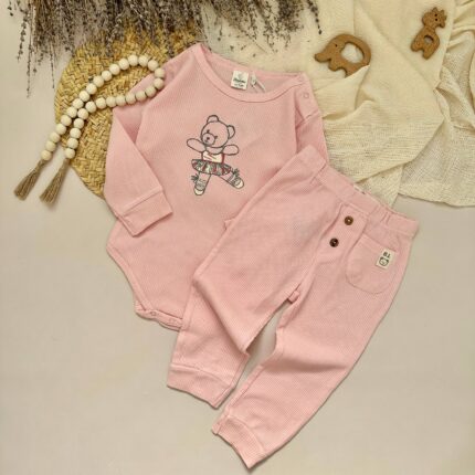 ست بادی شلوار چیندار صورتی