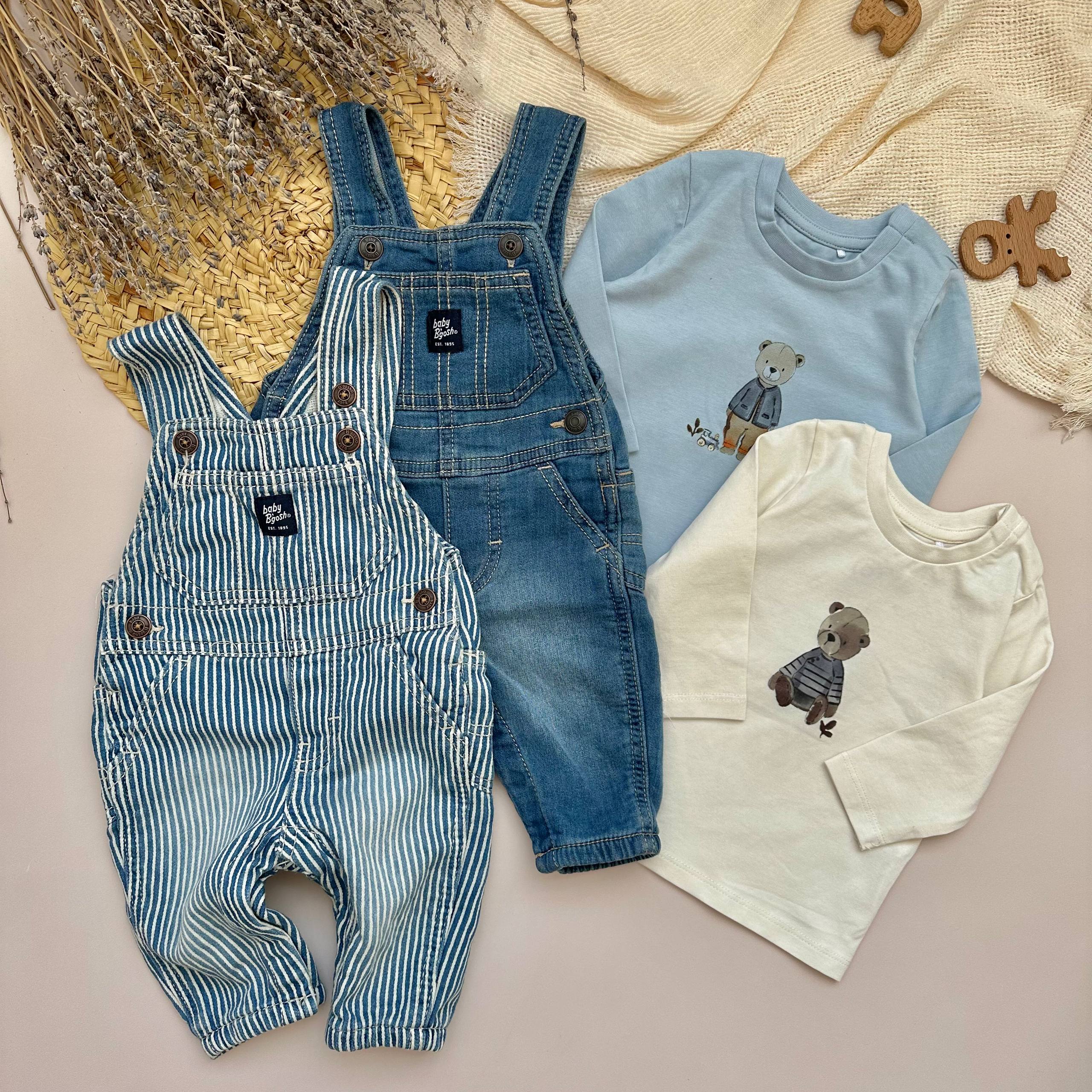 جین ساده و صورتی چیندار دکمه تعویض پوشک دارند